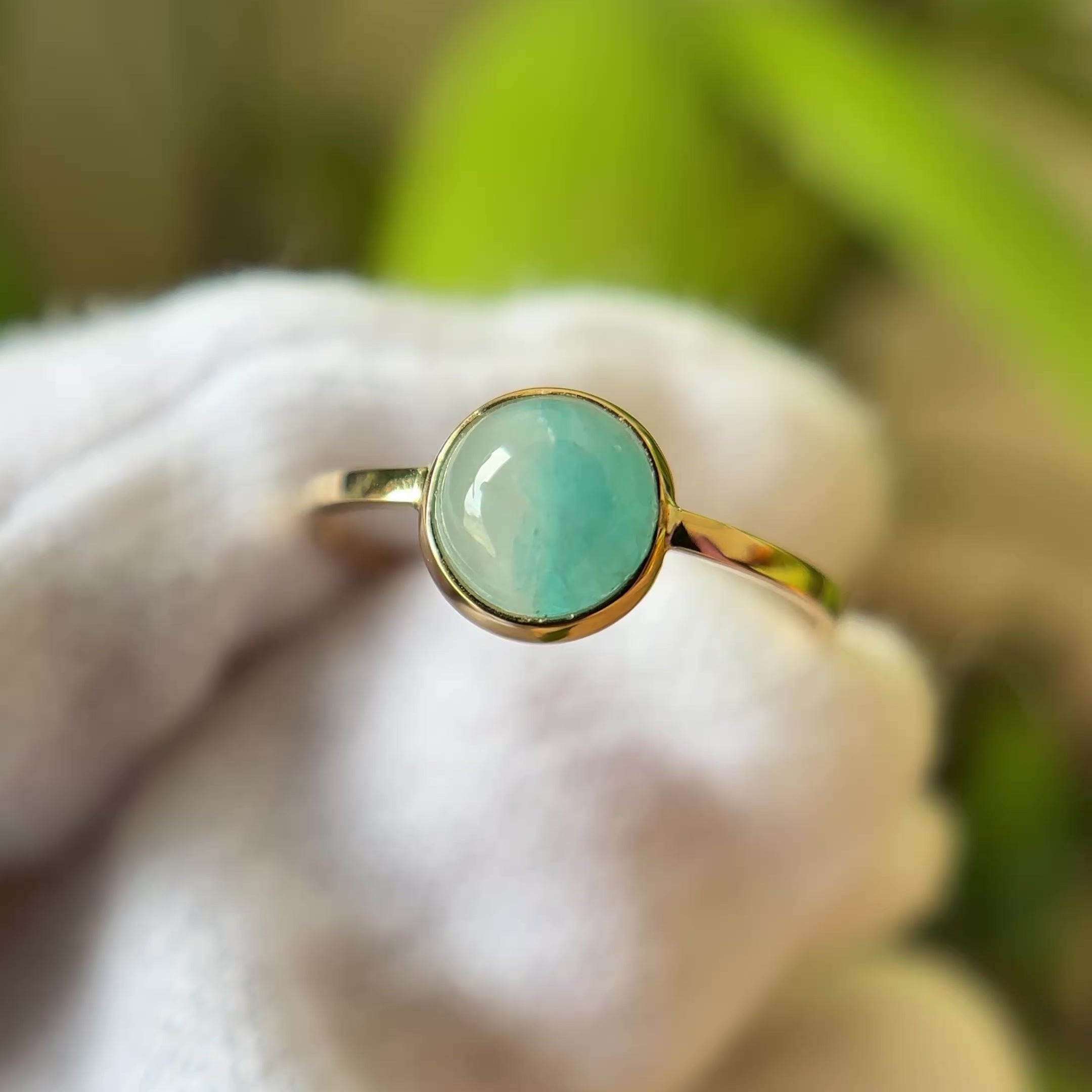 ネオンブルーのパライバカラーと、透明感のあるミルキーホワイトが重なり合ったカボションカットは、
