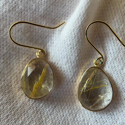 うるうるとした煌めきの中に、金色のルチルの針が繊細な輝きを添え、耳元を上品に彩ります。