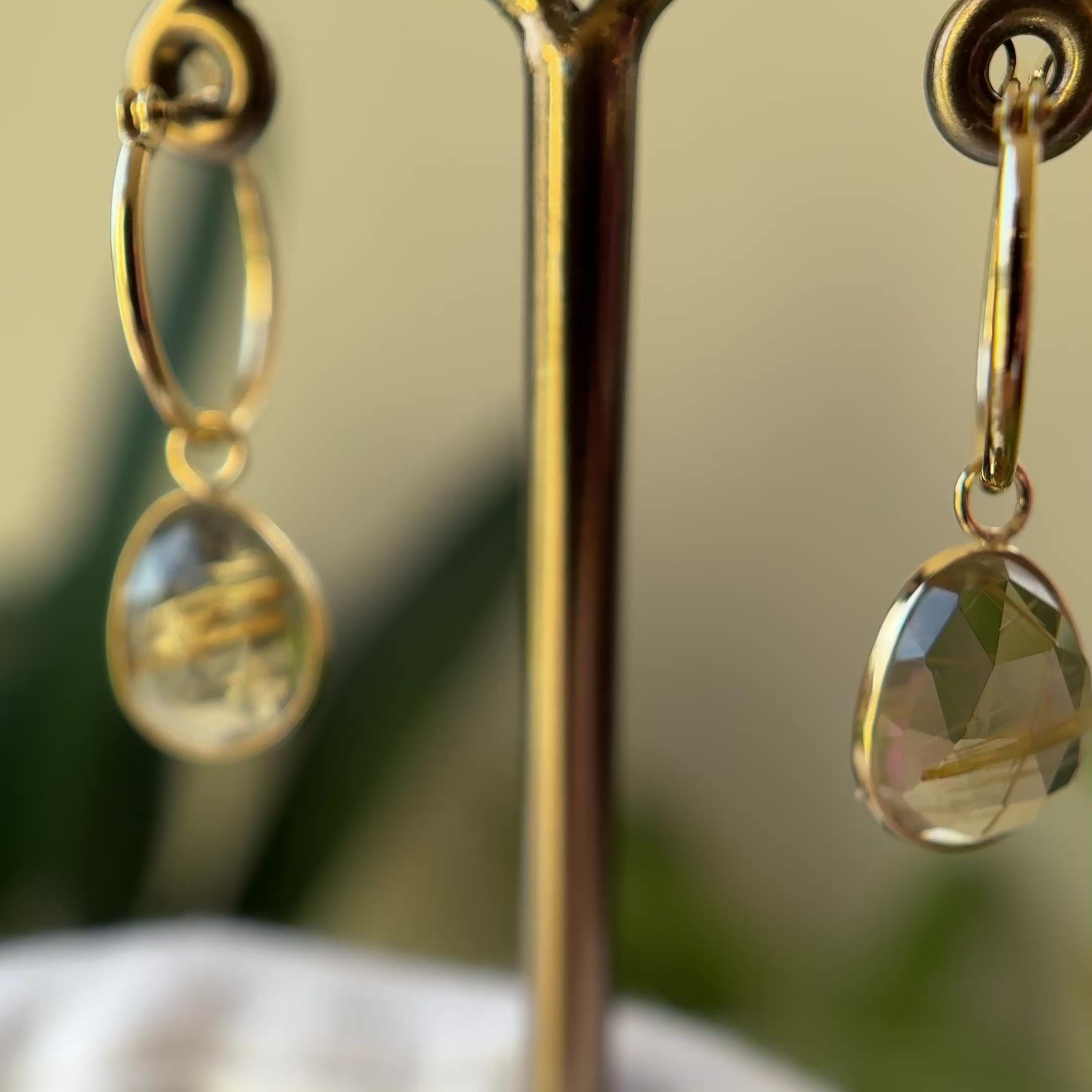 うるうるとした煌めきの中に、金色のルチルの針が繊細な輝きを添え、耳元を上品に彩ります。