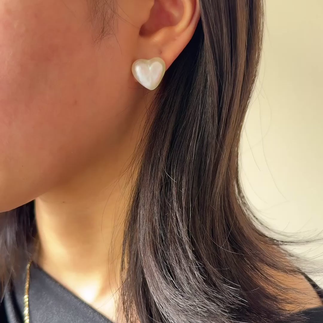 <NEW>K18ハート型マベパールピアス(ヨコ)