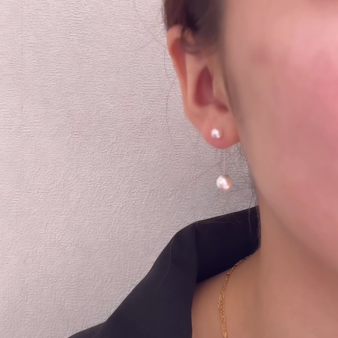 耳の下に来るアコヤパールキャッチが動くたびに揺れる