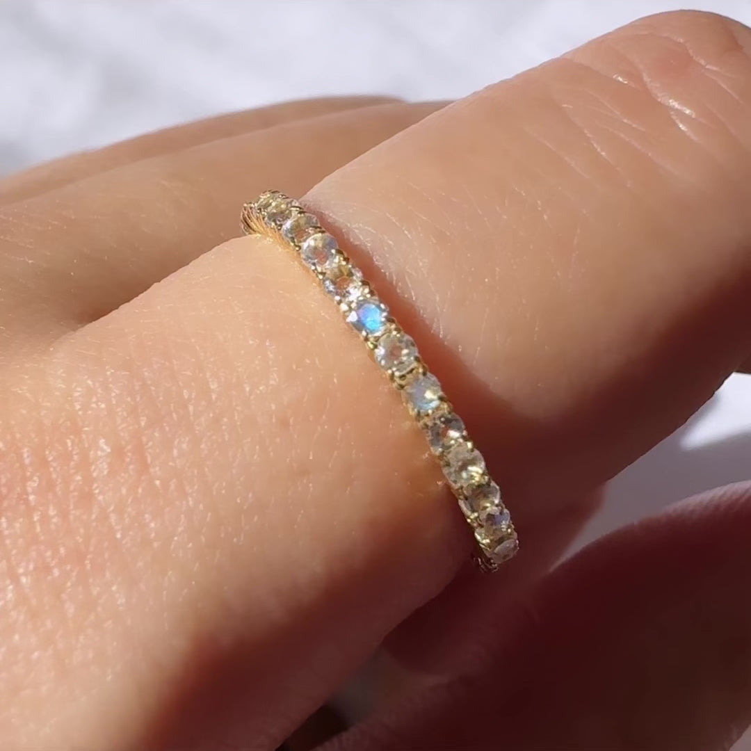 リングの全周にロイヤルブルームーンストーンが留められている為
